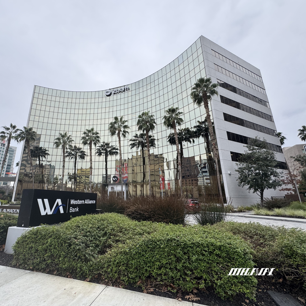 Zoom本社は、広い敷地の中にあるガラス外装の大きなビルで、外光を拾って金色に反射して見える外観が印象的でした。